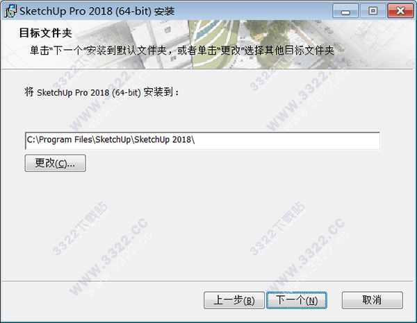 4、閱讀軟件安裝目錄可以自行更改,小編按默認(rèn)路徑安裝C:Program FilesSketchUpSketchUp 2018,點(diǎn)擊下一步