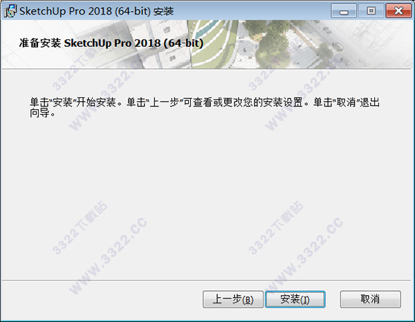 6、開(kāi)始SketchUp Pro 2018軟件安裝,點(diǎn)擊安裝按鈕,即可快速安裝