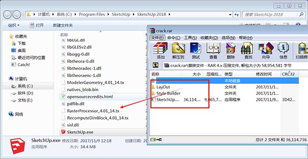 SketchUp.exe到C:Program FilesSketchUpSketchUp 2018,LayOut文件夾到C:Program FilesSketchUpSketchUp 2018LayOut,Style Builder文件夾到C:Program FilesSketchUpSketchUp 2018Style Builder