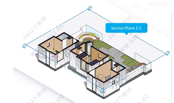 4、快速生成任何位置的剖面,使設(shè)計(jì)者清楚的了解建筑的內(nèi)部結(jié)構(gòu),可以隨意生成二維剖面圖并快速導(dǎo)入AutoCAD進(jìn)行處理